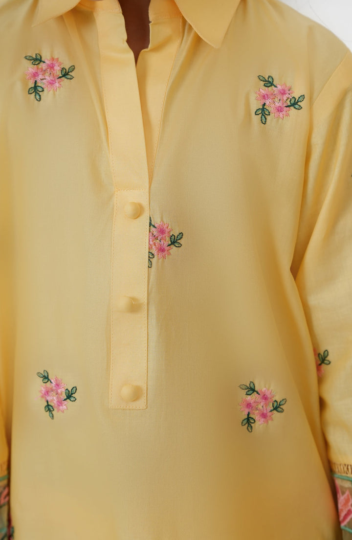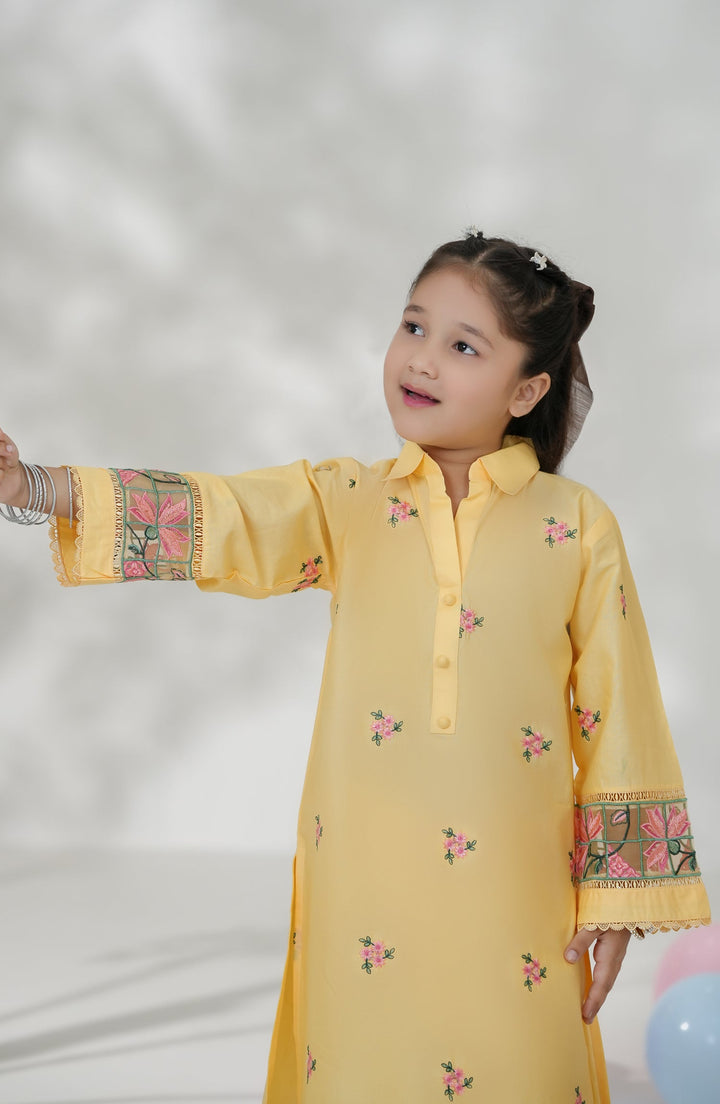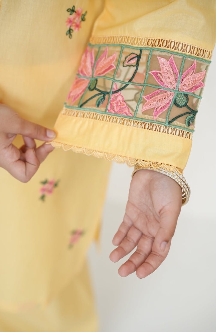 Souffle Guriya by Amna Khadija Embroidered Cotton Stitched 2 Piece Suit - SGF-16 - AM25SOFG - Yellow - Summer Girls Collection