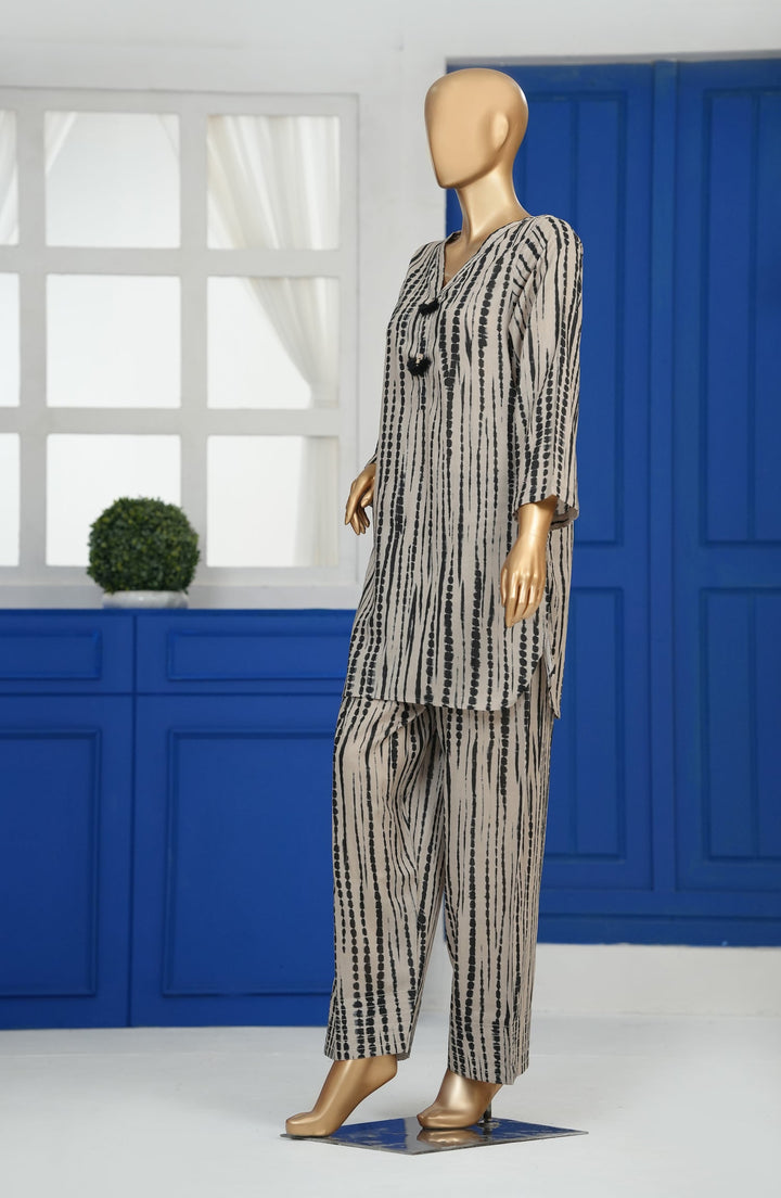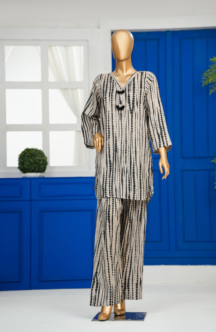 Twirled by Amna Khadija Digital Tie n Dye Printed Cotton Stitched 2 Piece Suit - TDE-01 - AM25TWLR - Grey - Summer Collection
