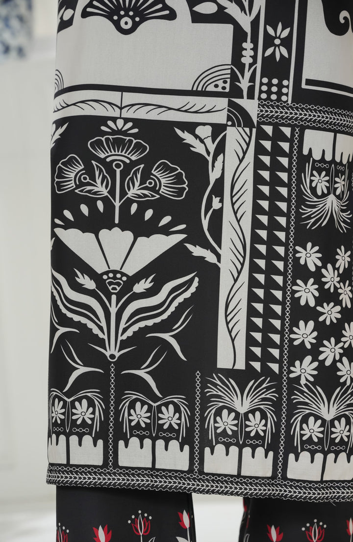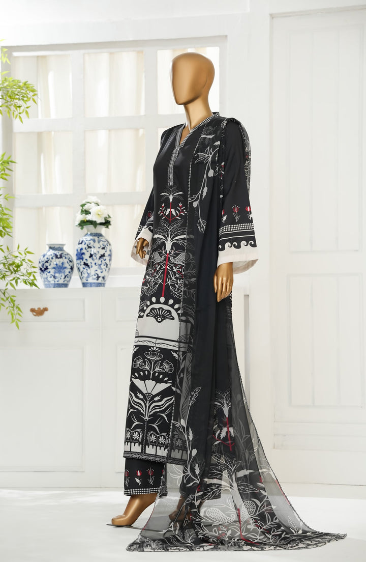 Varzah by Amna Khadija Printed Poly Swiss Stitched 3 Piece Suit - VUB-02 - AM25VRZ - Black - Luxury Collection