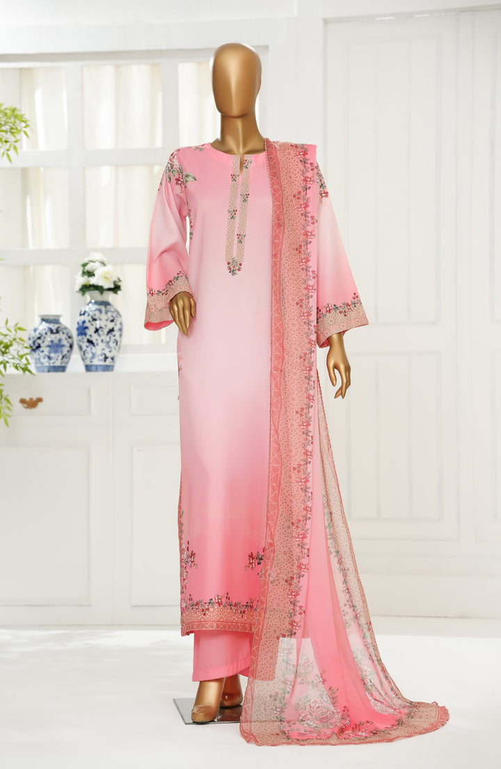 Varzah by Amna Khadija Printed Poly Swiss Stitched 3 Piece Suit - VUB-05 - AM25VRZ - Pink - Luxury Collection
