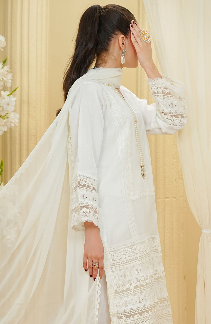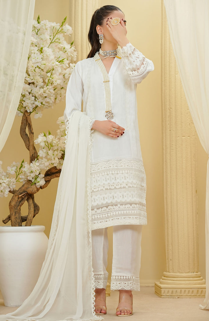 Velouré Luxury Eid Pret 2 Piece Khaddi Net White D-03