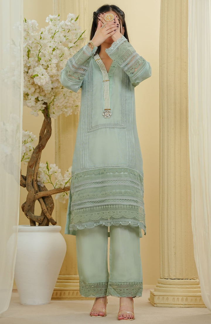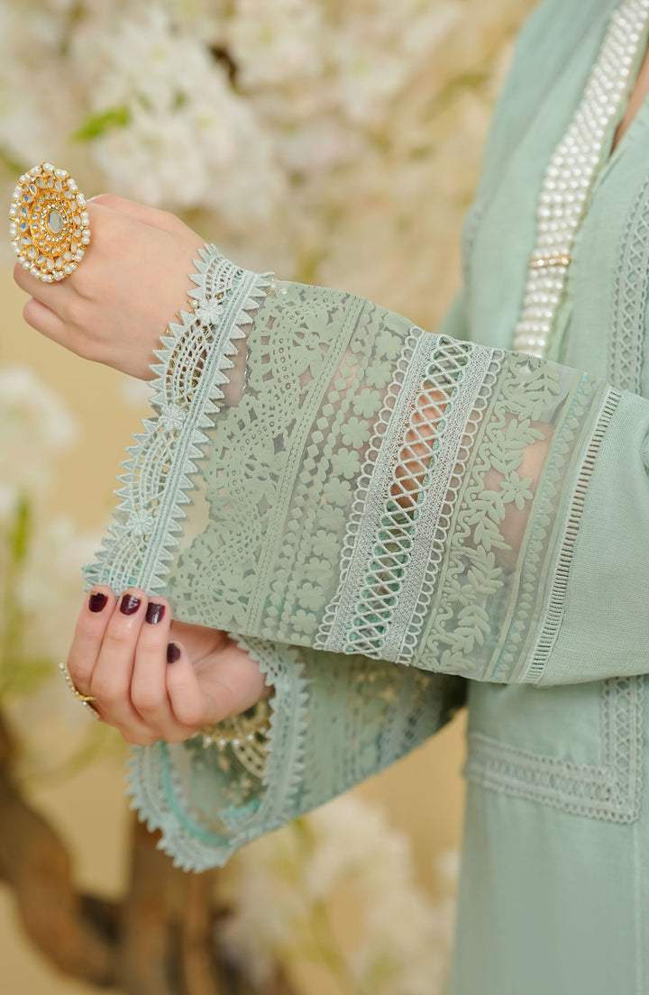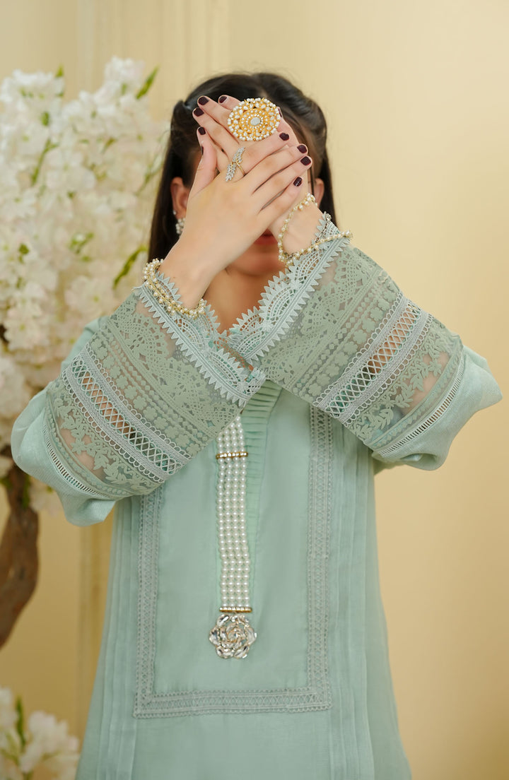Velouré Luxury Eid Pret 2 Piece Khaddi Net Sea Green D-04