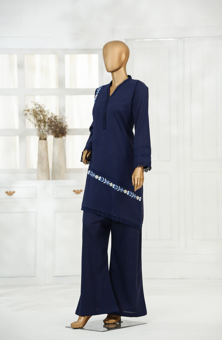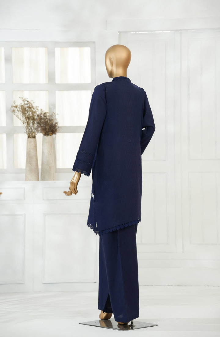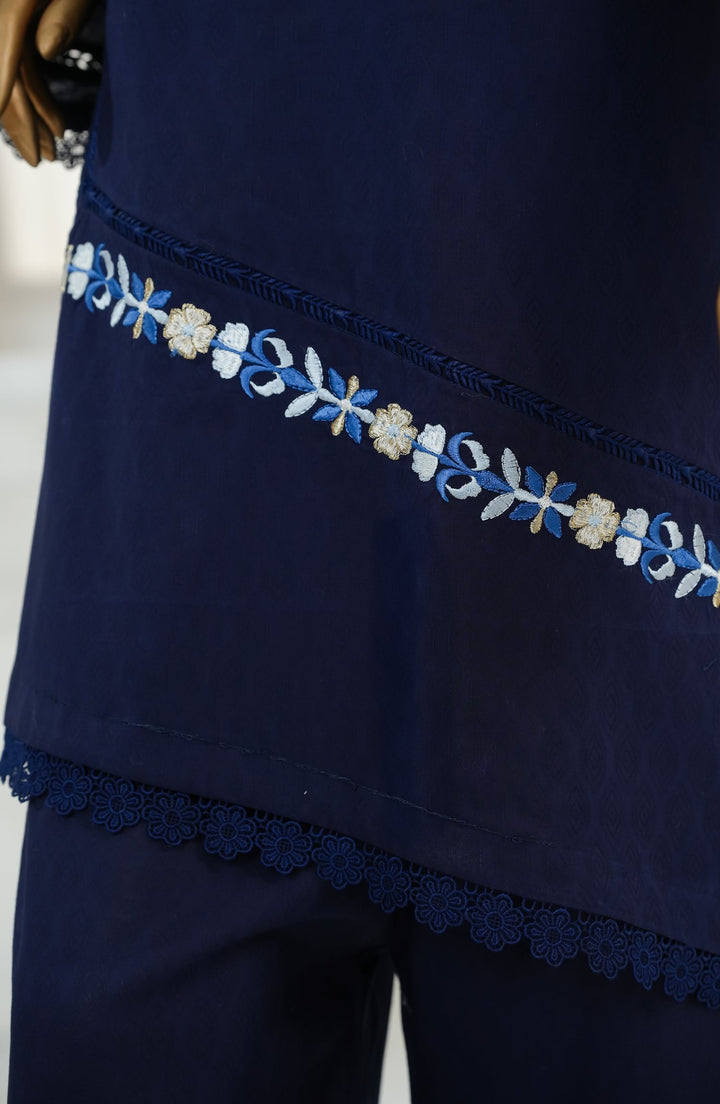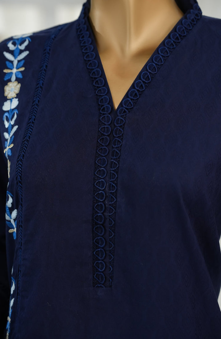 Yolo Signature by Amna Khadija Embroidered Jacquard Cotton Stitched Co ord Sets - YSLC-03 - AM25YSLC - Navy Blue - Luxury Collection