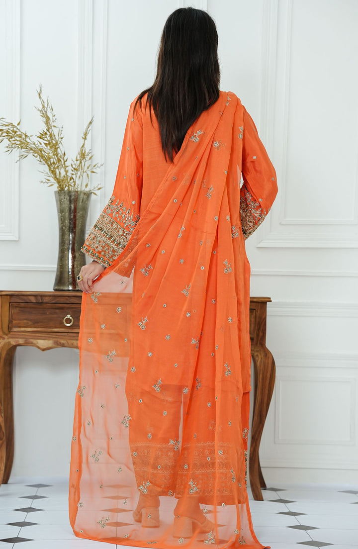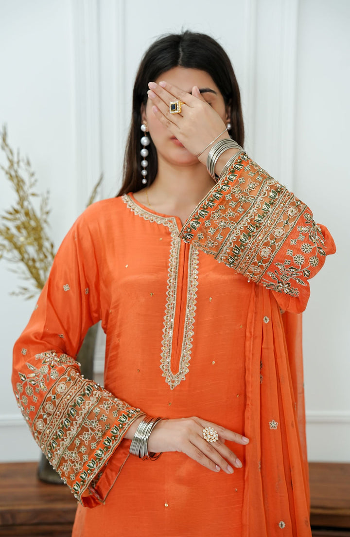 Zareen by Amna Khadija Embroidered Raw Silk Stitched 3 Piece Suit - ZLF-03 - AM25ZLF - Orange - Festive Collection