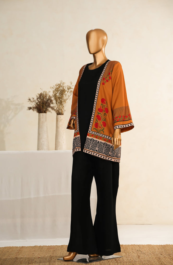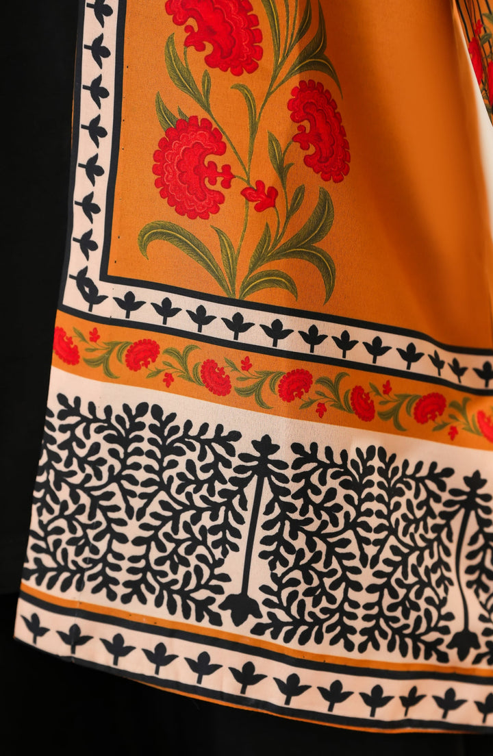 Zehaina by Amna Khadija Digital Printed Poly Swiss Stitched 3 Piece Set - AKZ-01 - AM25ZEH - Mustard & Black - Casual Collection