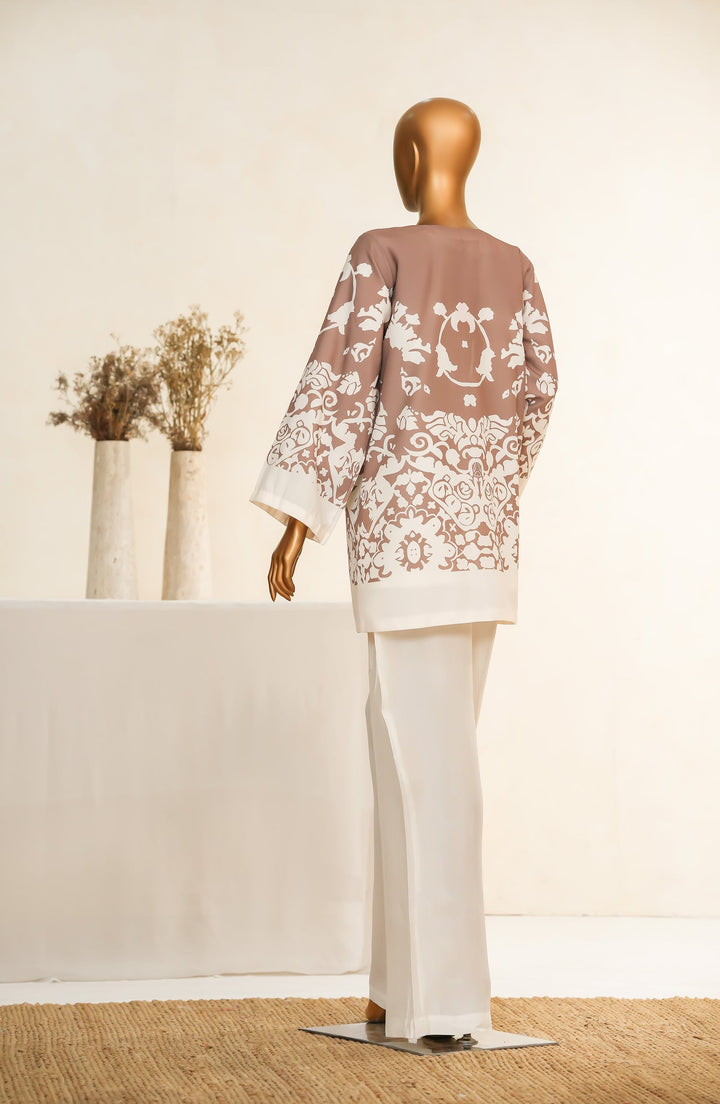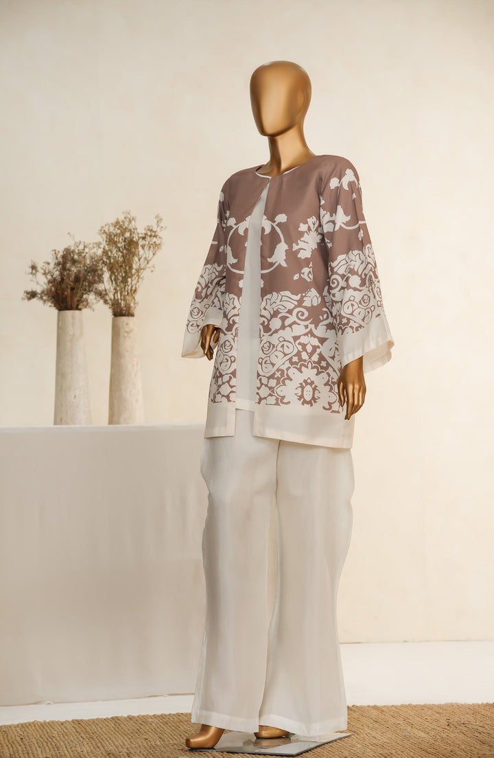 Zehaina by Amna Khadija Digital Printed Poly Swiss Stitched 3 Piece Set - AKZ-06 - AM25ZEH - Brown & White - Casual Collection